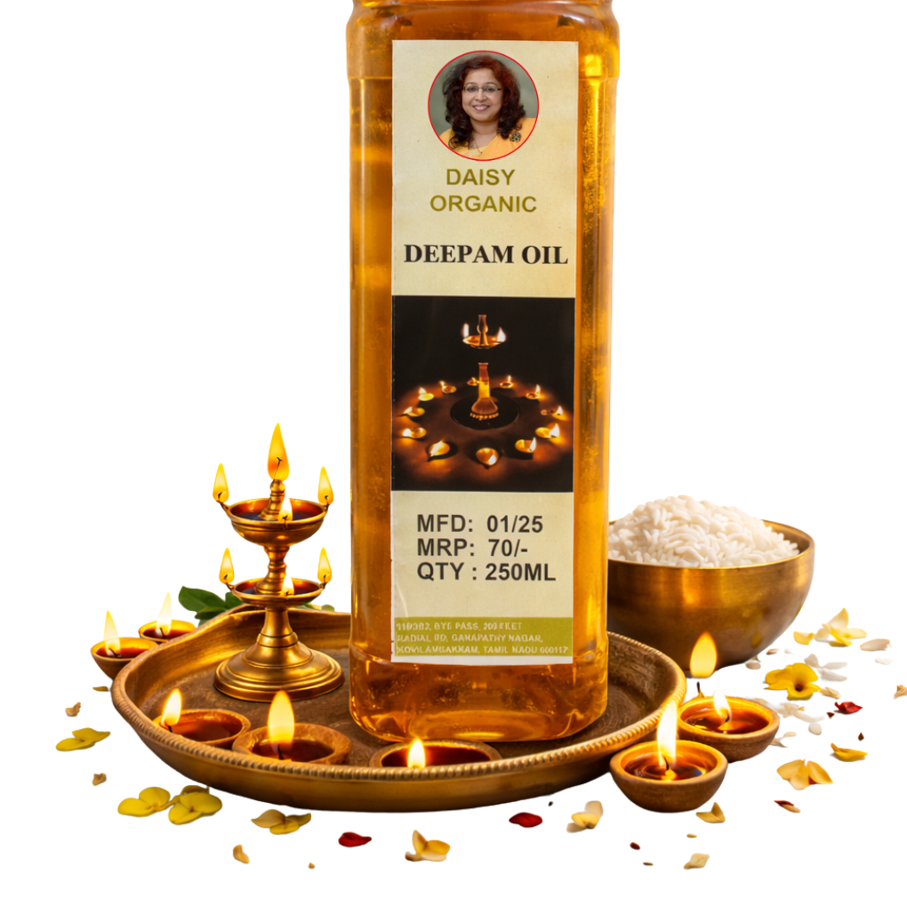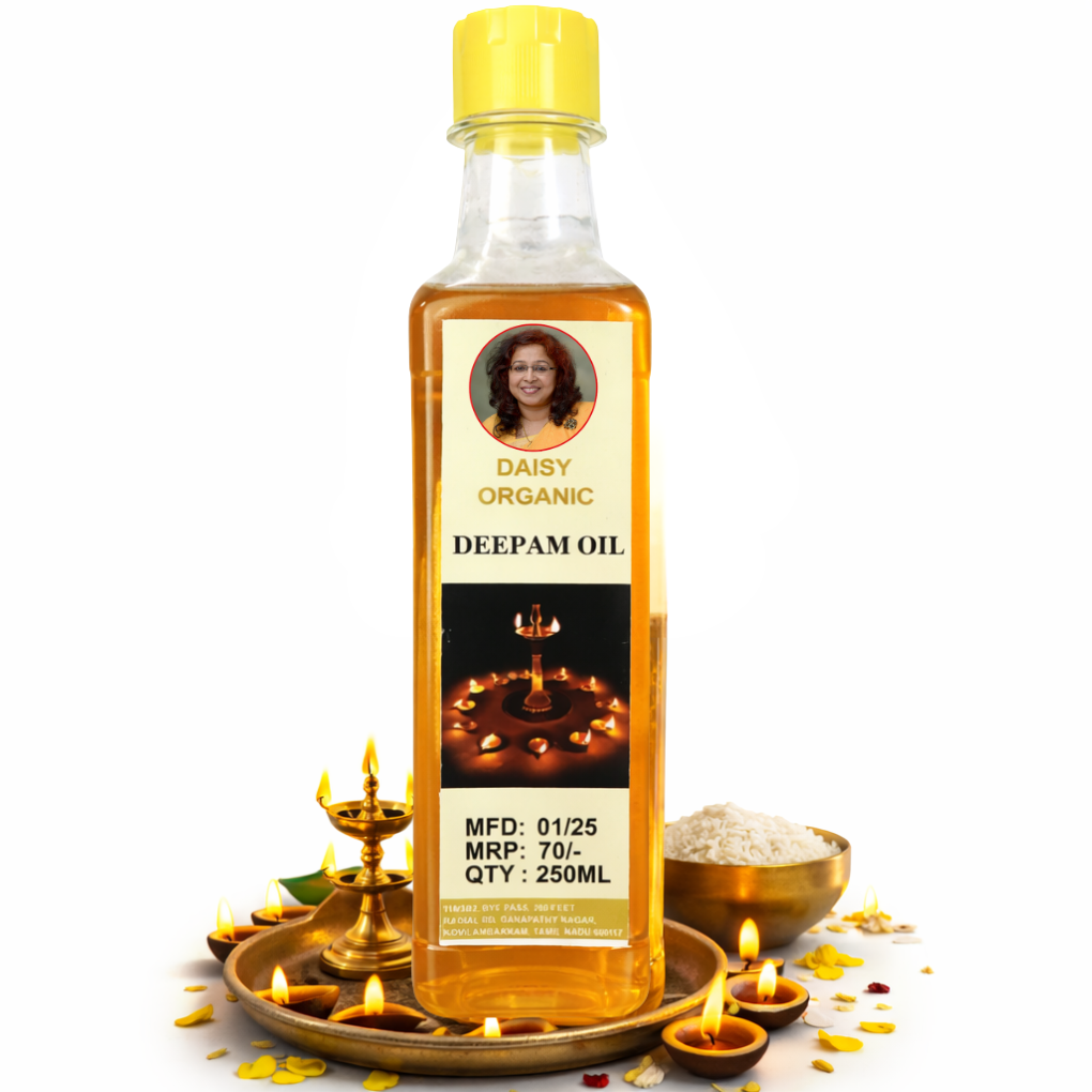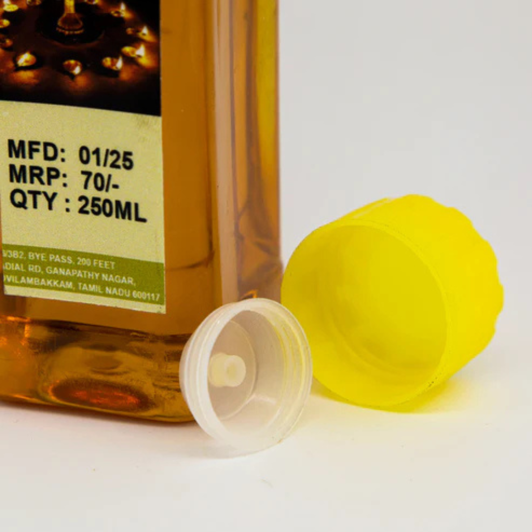 Deepam Oil is specially prepared for traditional lamp lighting during pooja and spiritual rituals. It ensures clean and steady burning.