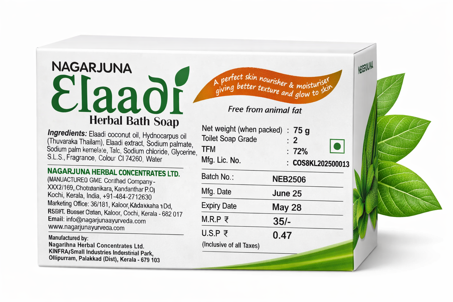 Eladhi Soap is a traditional herbal soap made using natural ingredients known for their skin-friendly properties. It is prepared based on Ayurvedic principles to support daily skincare needs. The formulation is gentle on the skin and suitable for regular use.