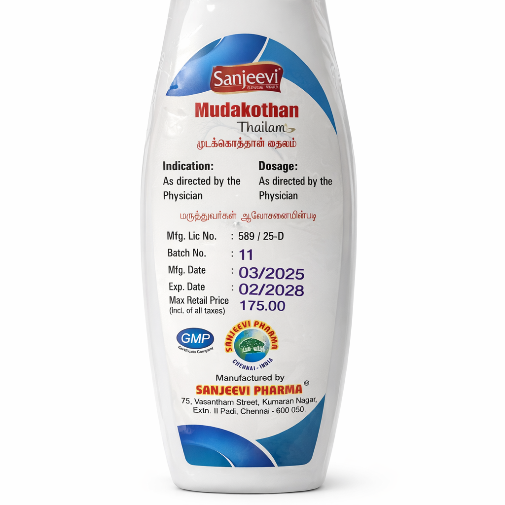 Mudakathan Oil is prepared using Mudakathan (Balloon Vine) leaves, traditionally known for supporting joint health and flexibility.
